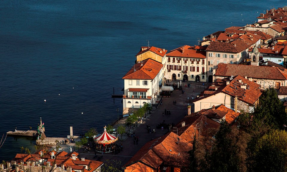 La ville de San Carlo Borromeo, surplombant l'imposante Fortresse de Angera.